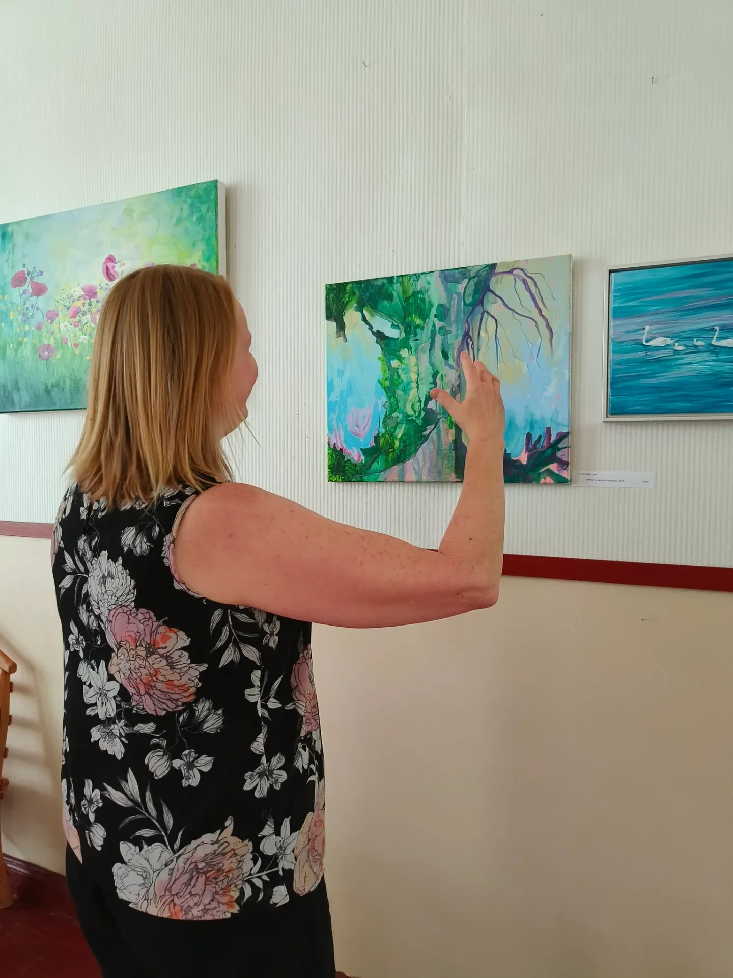 Muutamien lämmittelyharjoitusten jälkeen osallistujat lähtivät kiertämään näyttelyä omassa tahdissaan. Mukaan he saivat kysymyksiä ja kirjoitustehtäviä, joiden avulla teoksia saattoi tarkastella hieman tavallista syvemmin. Taide alkoi vähitellen avata omia polkujaan kirjoittamiseen, eikä kyse ollut vain katsomisesta vaan myös kuuntelemisesta: mitä jokin kuva, väri, tunnelma tai yksityiskohta herätti omassa sisimmässä.
